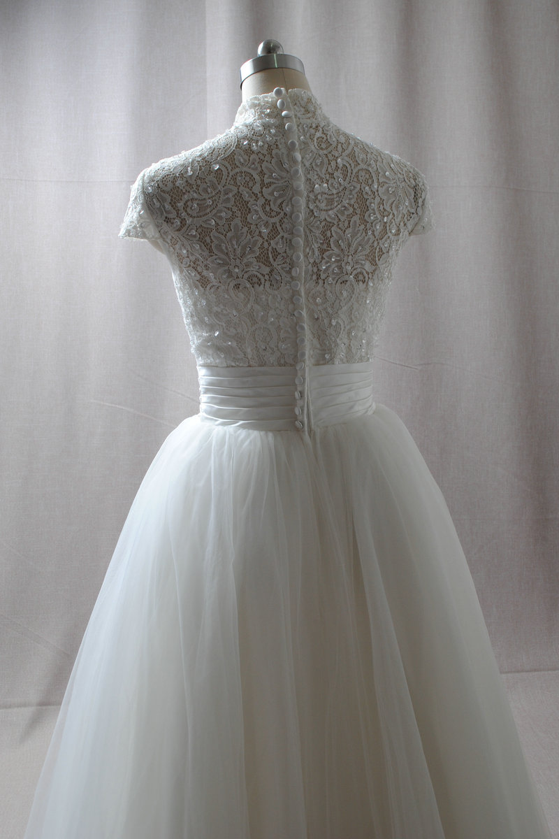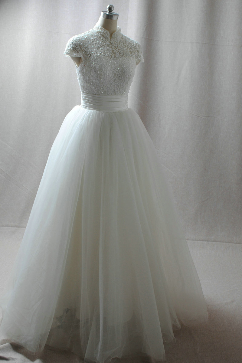 Ivory Tulle Ball Gown Wedding Dresses, Tulle Bridal Gowns, Princess Wedding Gowns, High Neck Bride Dress