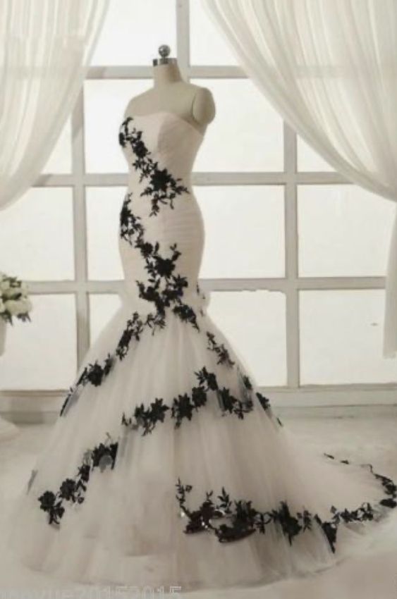 Black and White Wedding Dresses, Mermaid Wedding Gowns
