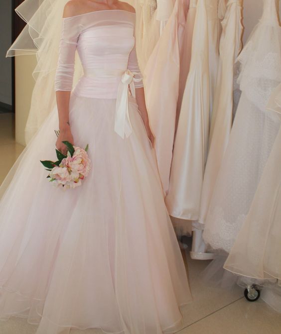 Off-shoulder Wedding Dresses with Sleeves, White Tulle Bridal Gowns