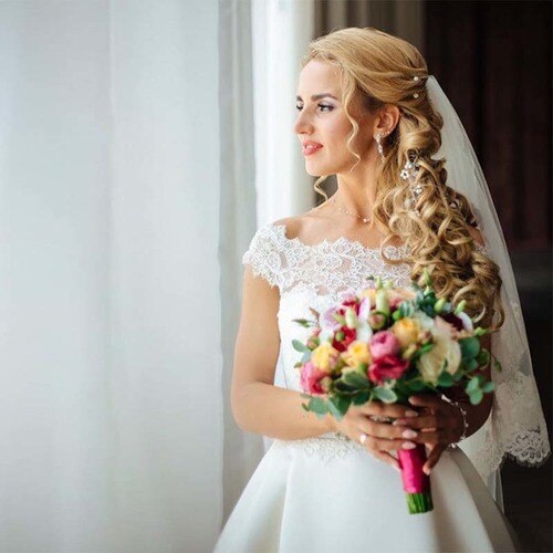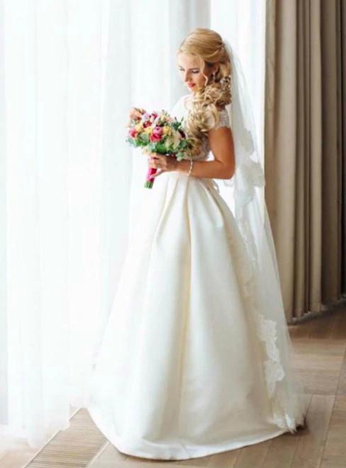 Off-the-shoulder Ball Gown Wedding Dresses with Lace Appliques