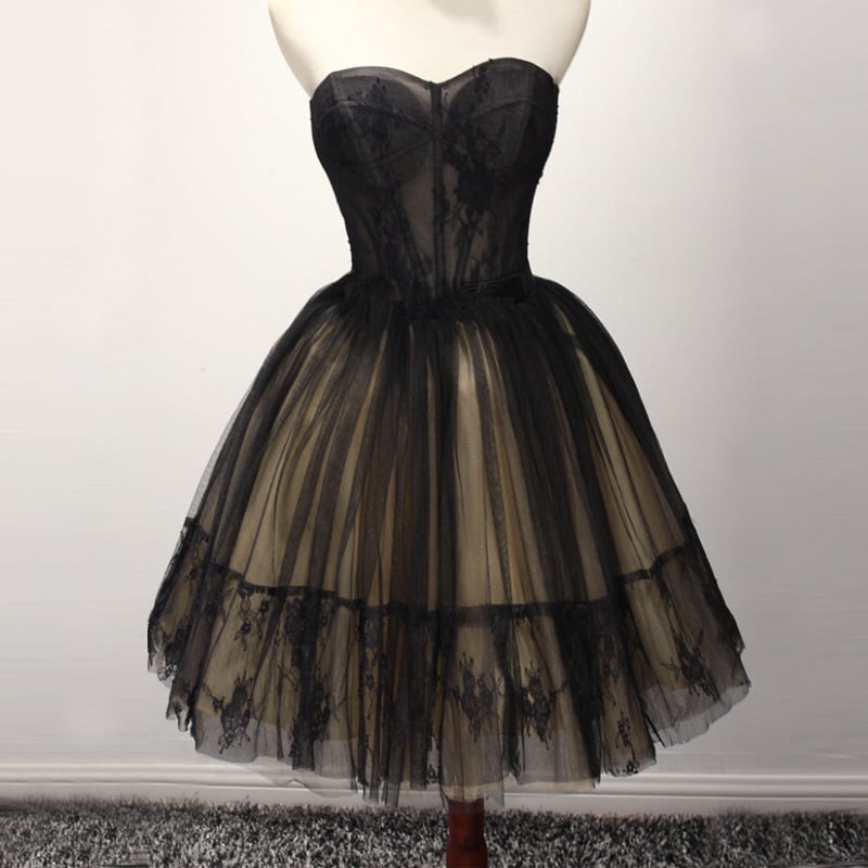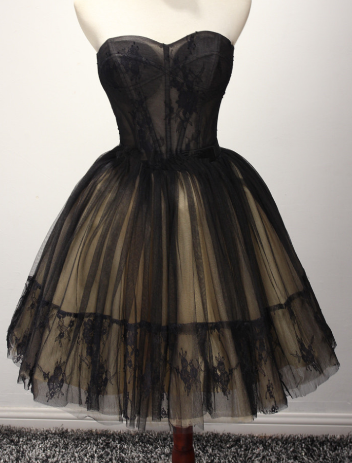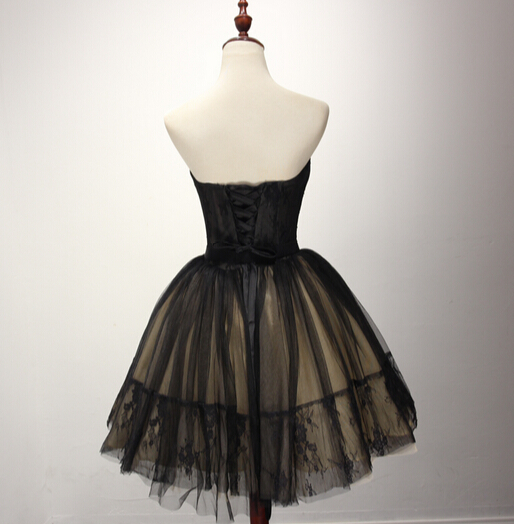 Cute Tulle Short Black Ball Gown Sweetheart Prom Dresses, Homecoming Dresses, Short Prom Dresses