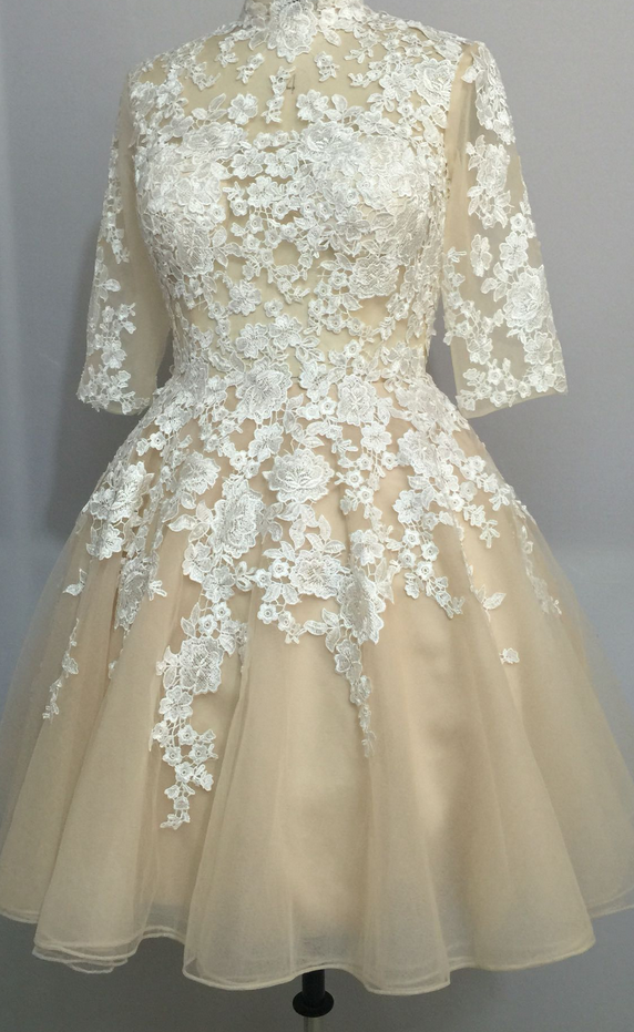 Lace Applique with Tulle Short Formal Dresses, Lovely Party Dresses, Short Prom Dresses, Semi Formal Dresses