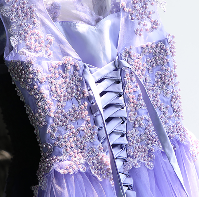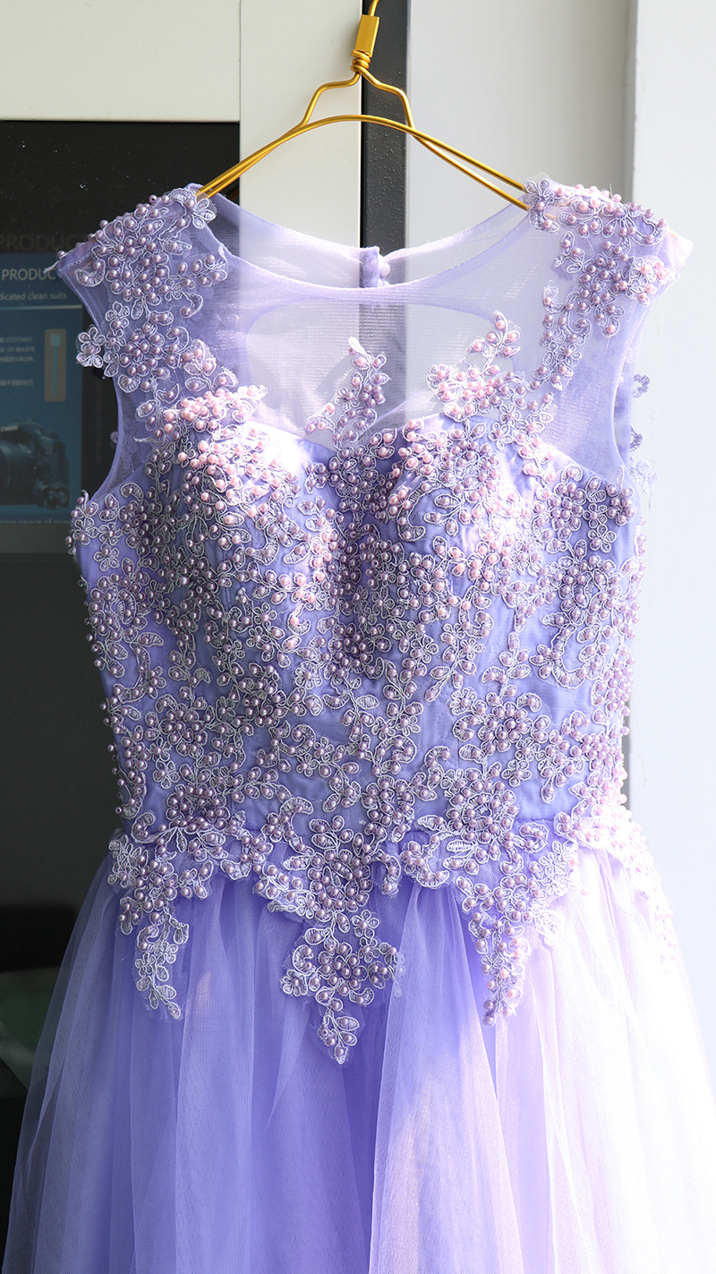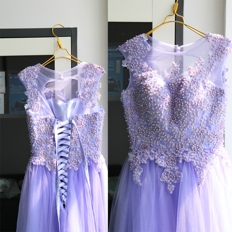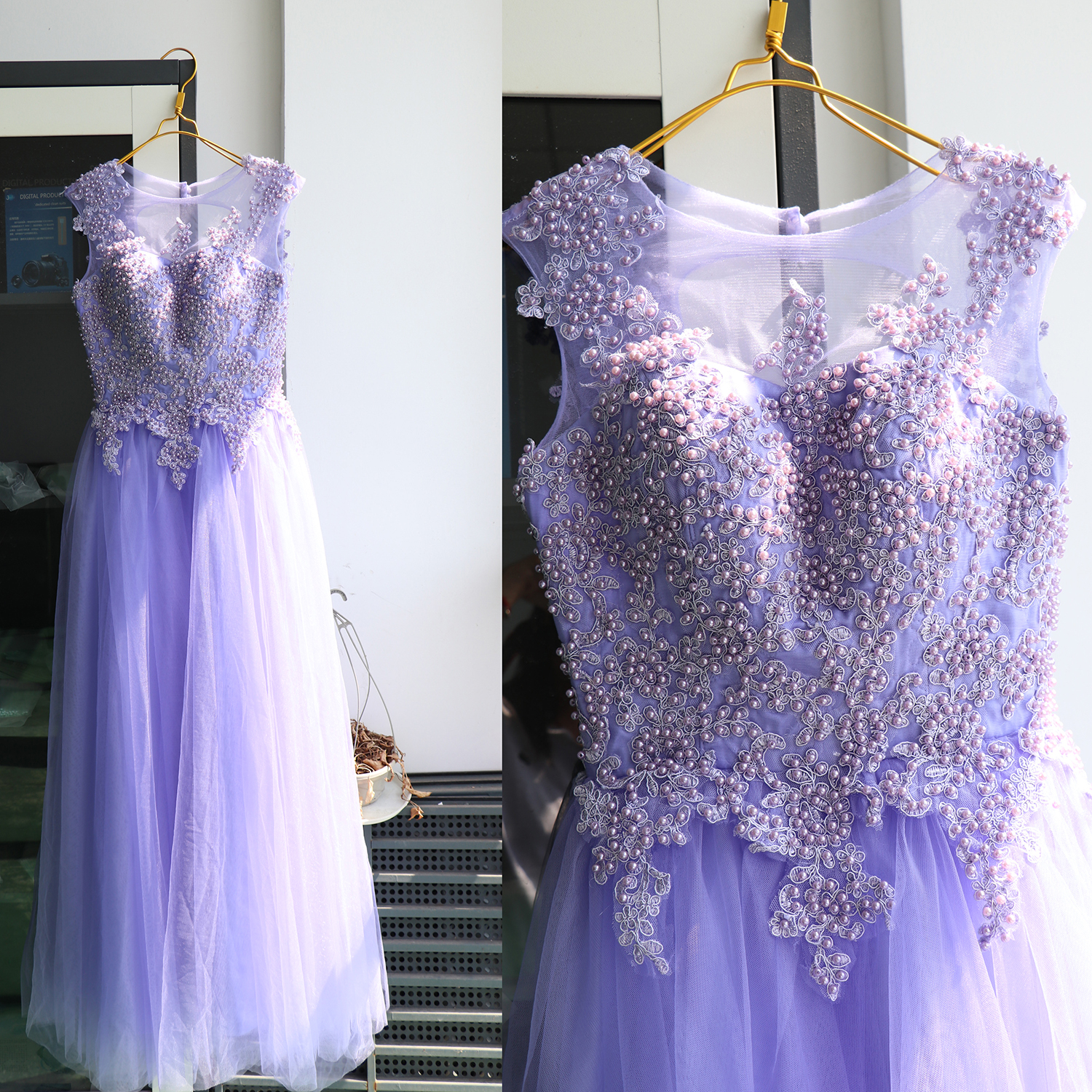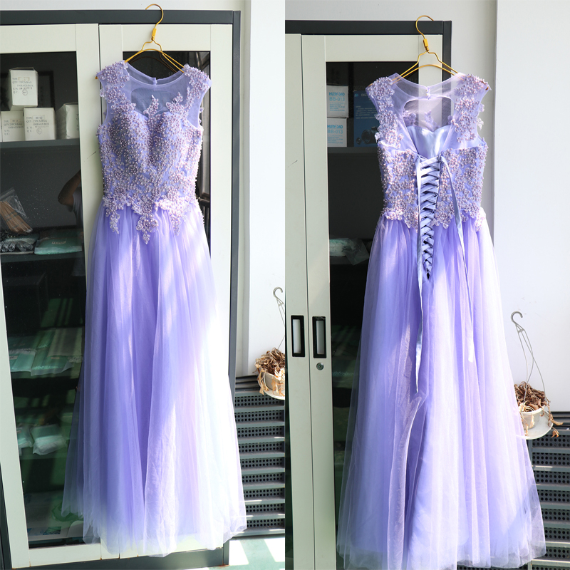 Lavender Prom Dresses, Elegant Evening Dresses, Beaded Engagement Party Dresses