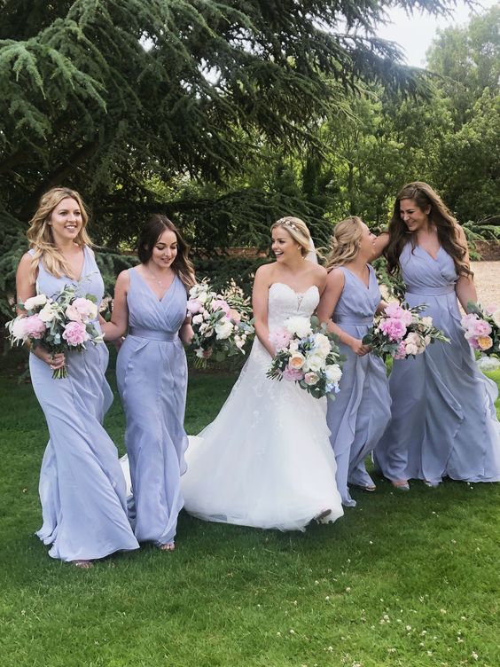 Lilac Chiffon Bridesmaid Dresses with Ruffled Skirt