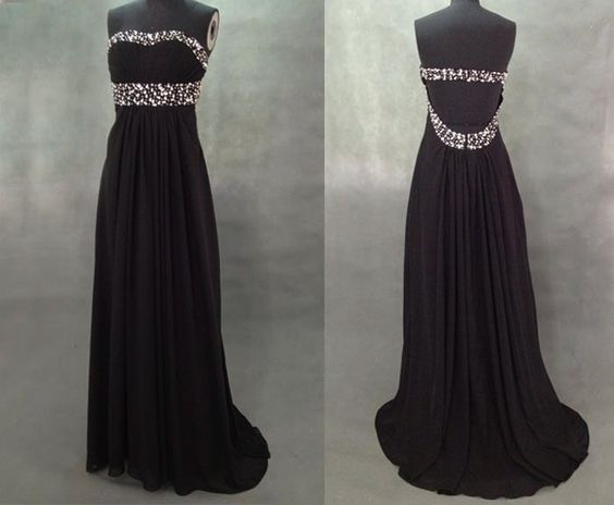 Beaded Chiffon Strapless Black Bridesmaid Dresses