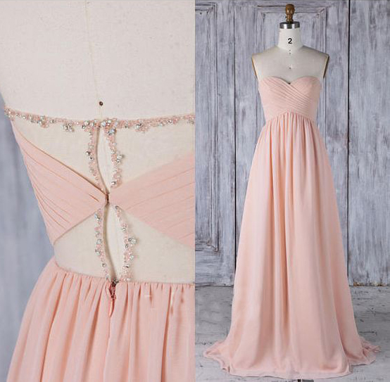 Sweetheart Pink Chiffon Bridesmaid Dresses with Delicate Beading