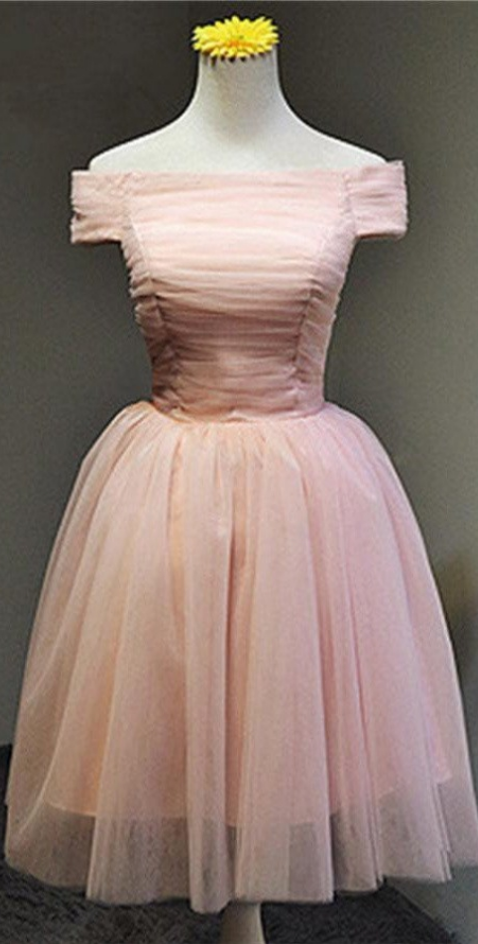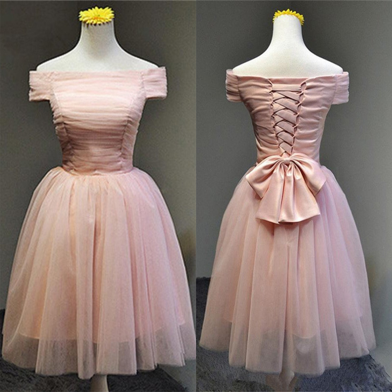 Pink Bridesmaid Dresses, Short Prom Dresses, Elegant Beautiful Pink Boat Neckline Lace Up Short Homecoming Dresses