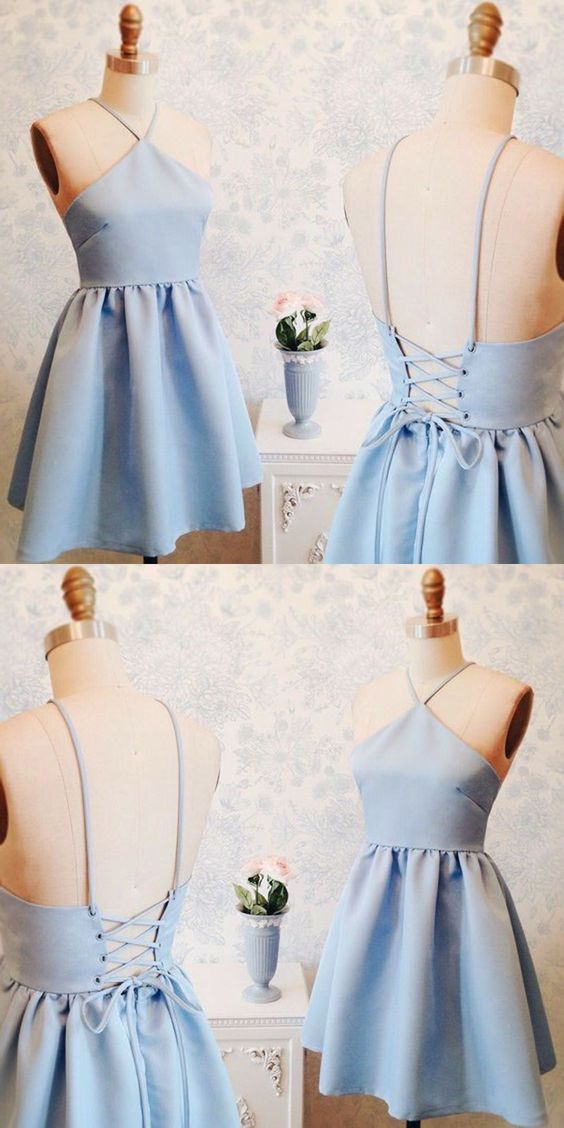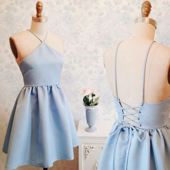 Simple Homecoming Dresses,A-line Homecoming Dresses,Halter Homecoming Dresses,Light Blue Homecoming Dresses,Short Prom Dresses,Party Dresses
