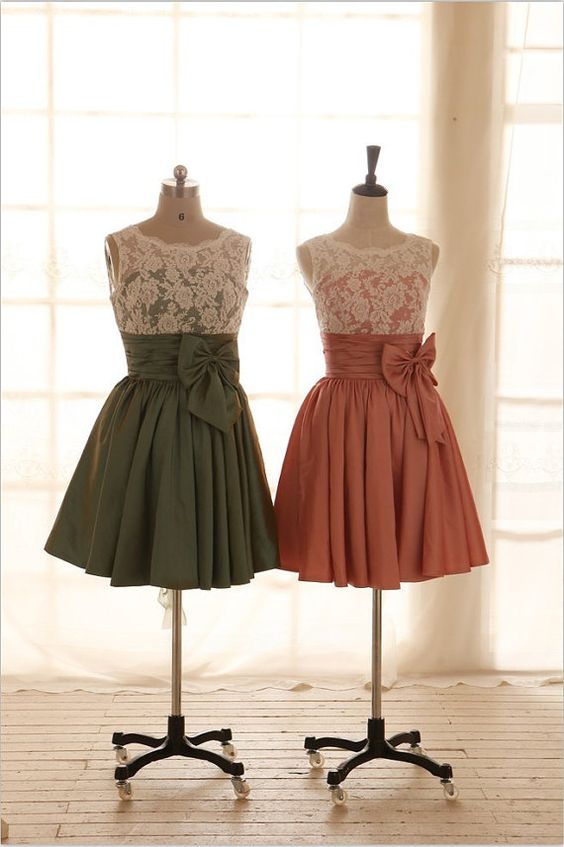 Short Homecoming Dresses, Short Bridesmaid Dresses, Lace Satin Prom Dresses, Semi Formal Dresses, Wedding Party Dresses, Formal Dresses for Juniors