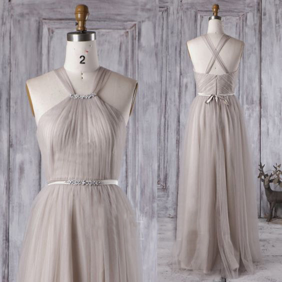 Light Gray Halter Bridesmaid Dresses, Maid of Honor Dresses, A-Line Prom Dresses