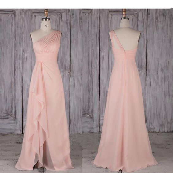 One-shoulder Bridesmaid Dresses, Wedding Guest Dresses for Fall, Pink Maid of Honor Dresses