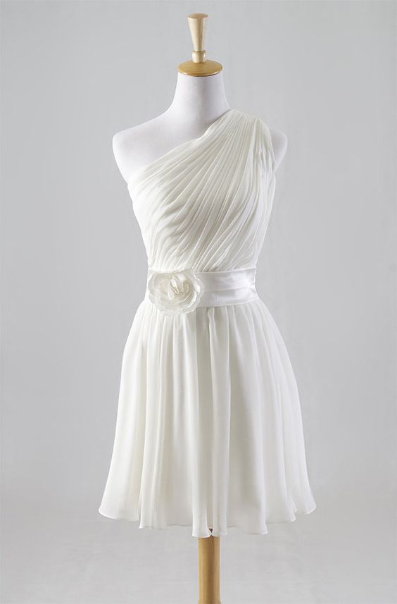 White Homecoming Dresses, White Bridesmaid Dresses, Short Prom Dresses, Chiffon Maid of Honor Dresses