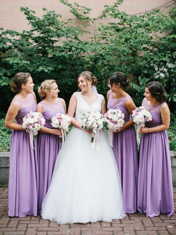 Lace Chiffon A-Line Purple Bridesmaid Dresses