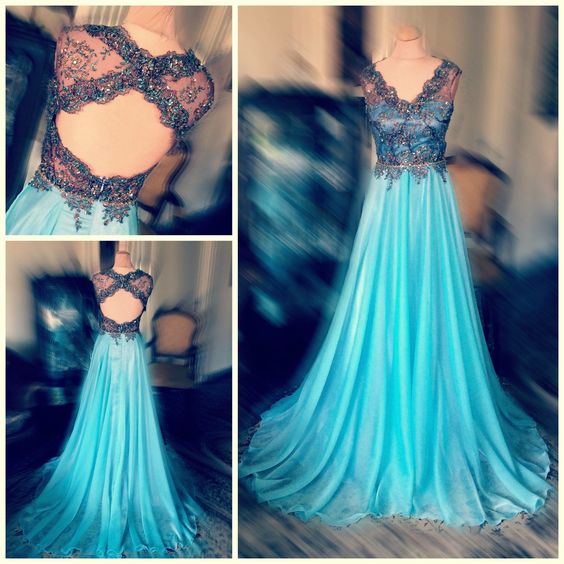 Black Lace Blue Chiffon Two-Tone Bridesmaid Dresses with Beading