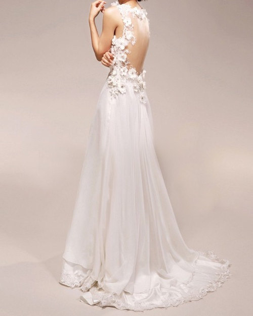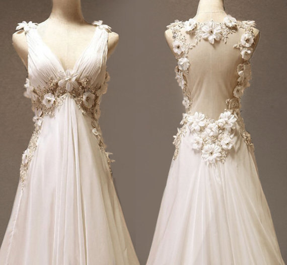 Handmade High Quality V-Neckline Floor Length Open Back Prom Dress with Flowers, Long Prom Dresses, Evening Dresses, Formal Dresses