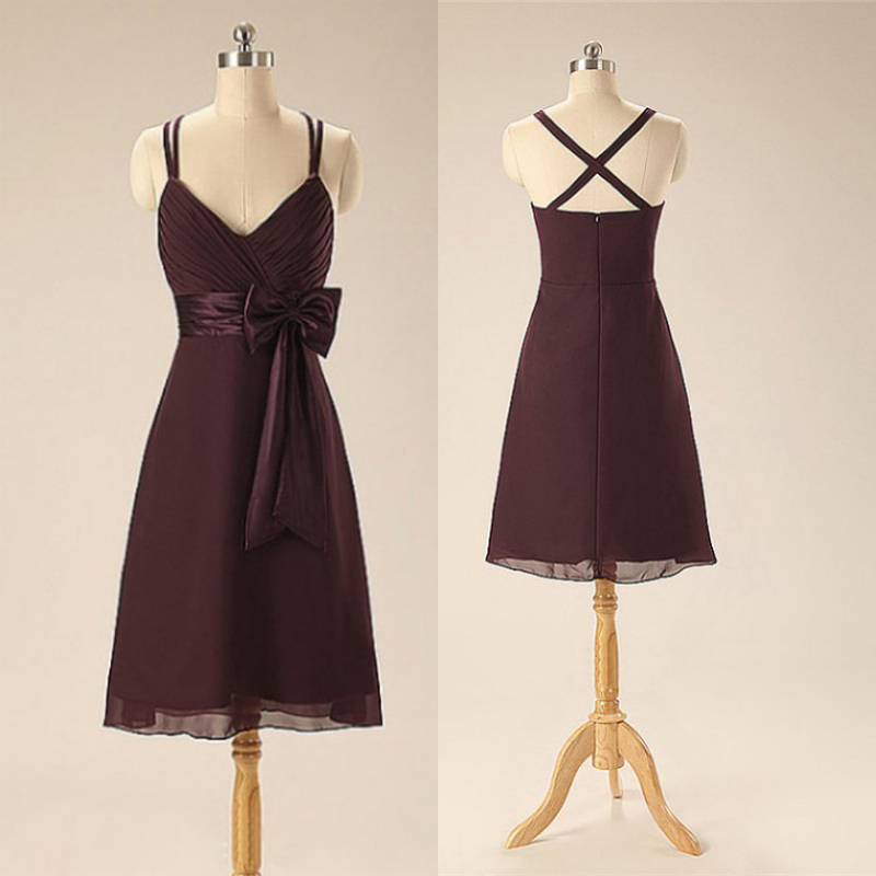 Short Bridesmaid Dresses, Short Chiffon Homecoming Dress Sale, Sleeveless Short/Mini Chiffon Criss-Cross Dresses