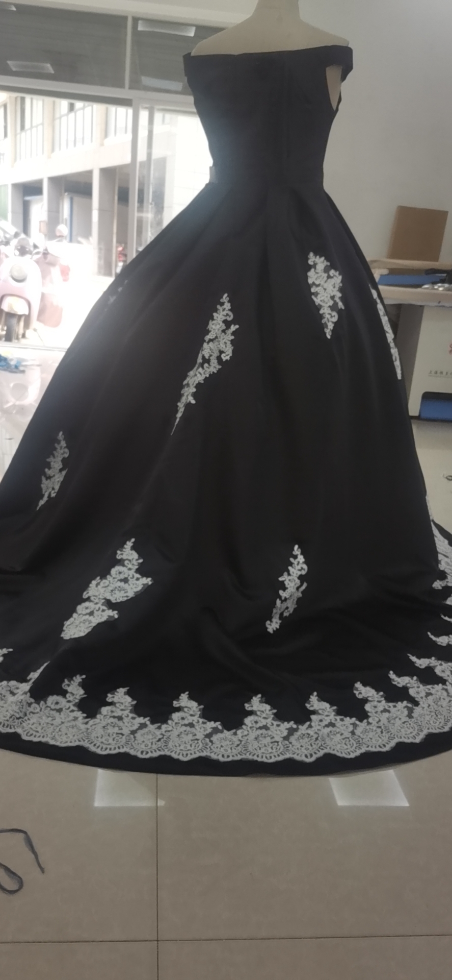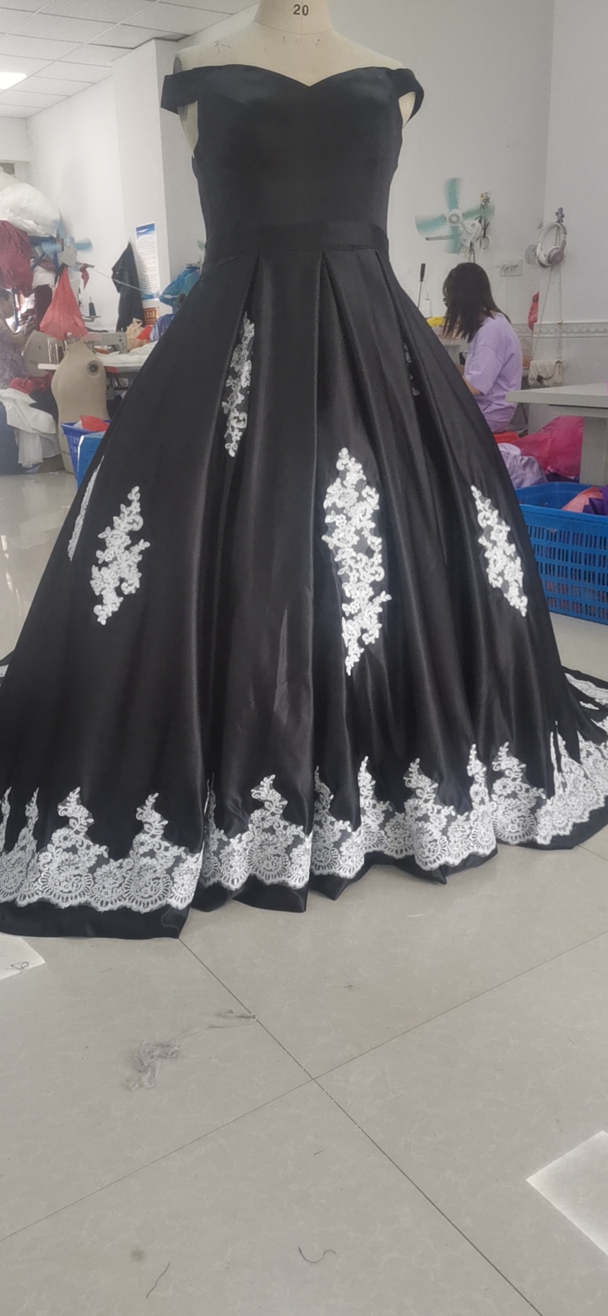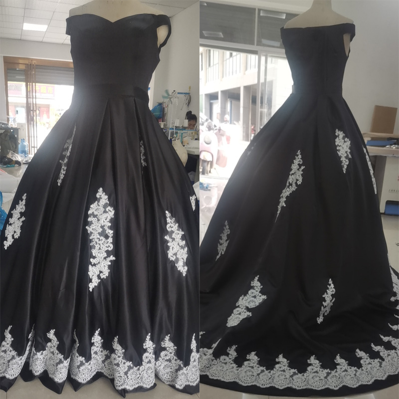 Black Wedding Dresses, Ball Gown Wedding Dresses, Black and White Wedding Dresses, Gothic Bridal Gowns with White Lace Appliques