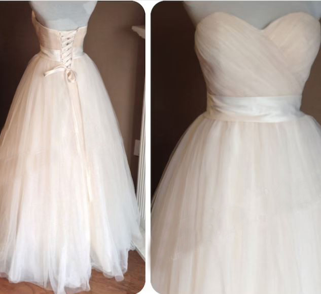 Champagne Tulle Wedding Dresses,Simple Wedding Gowns