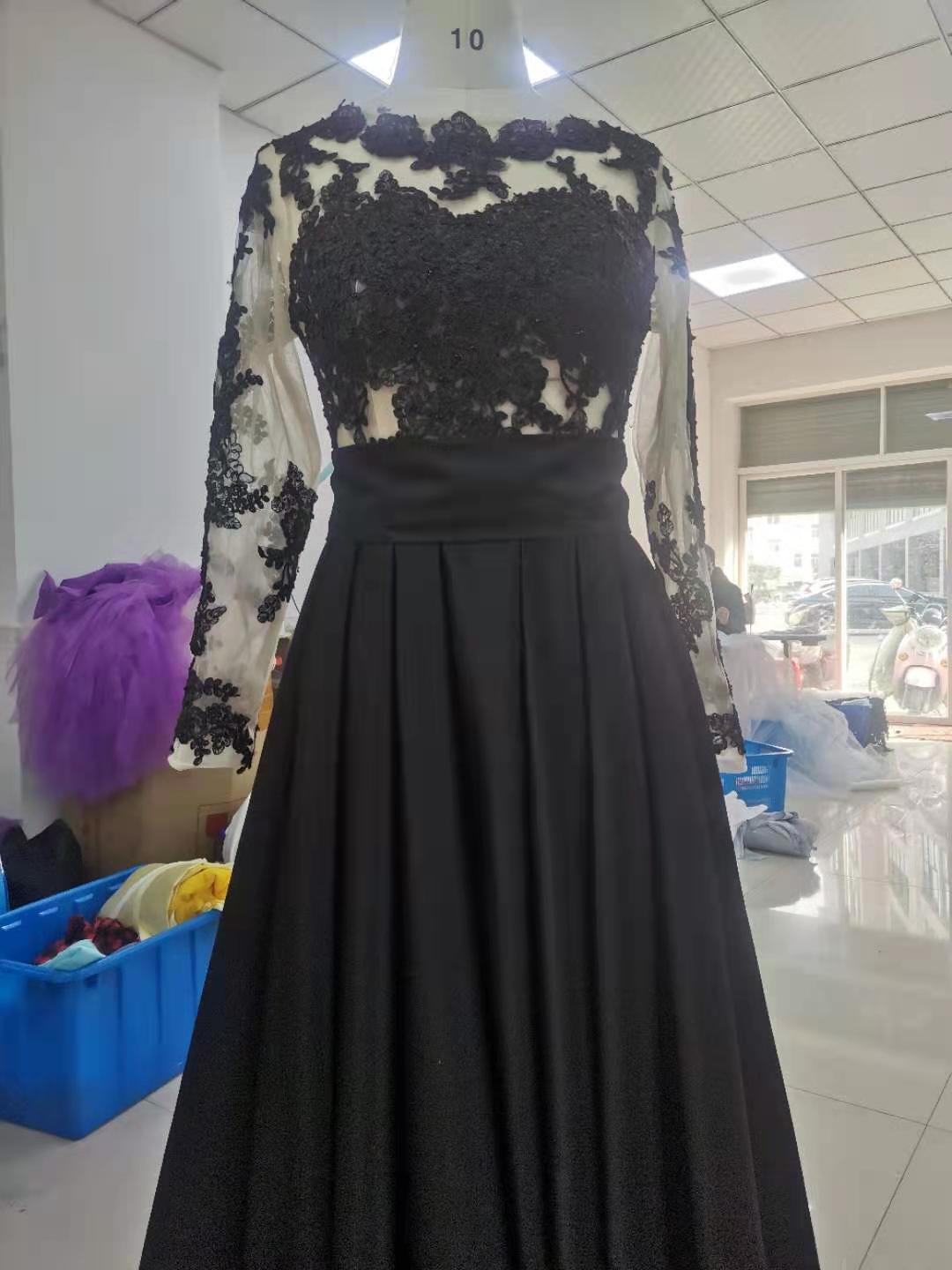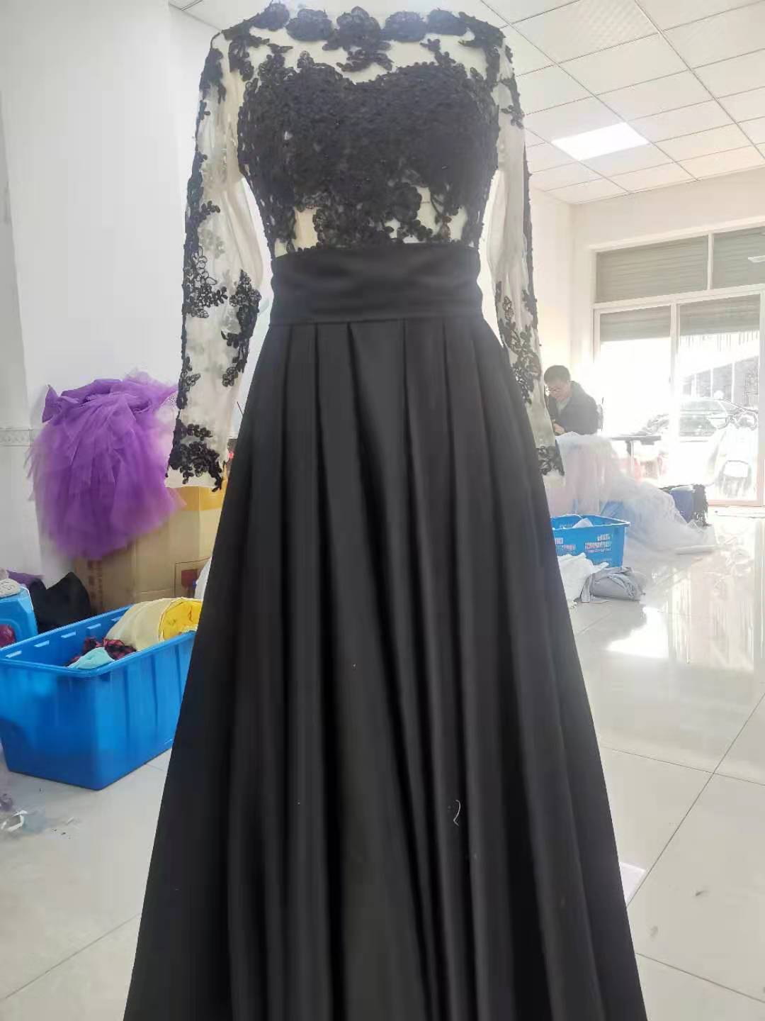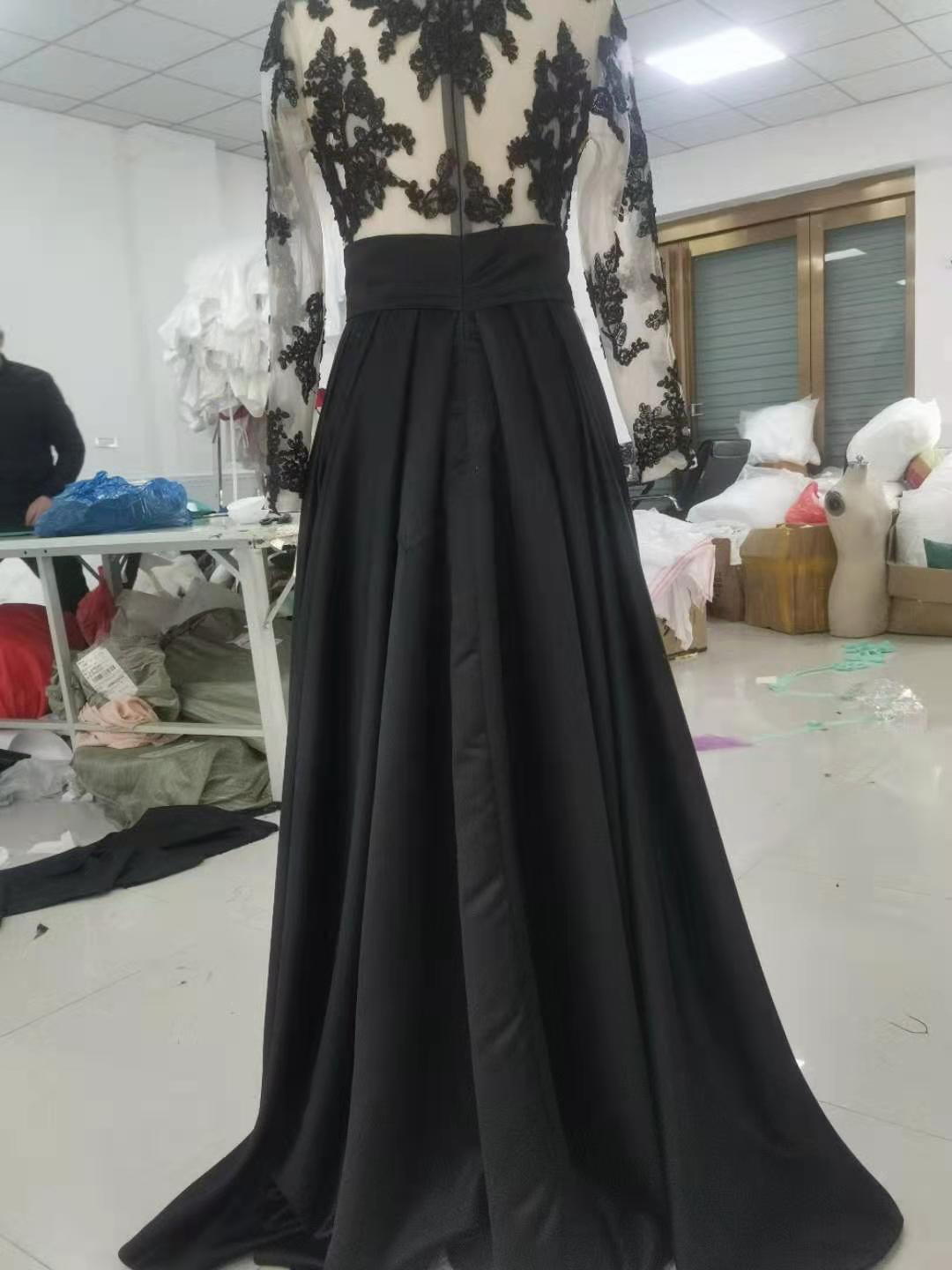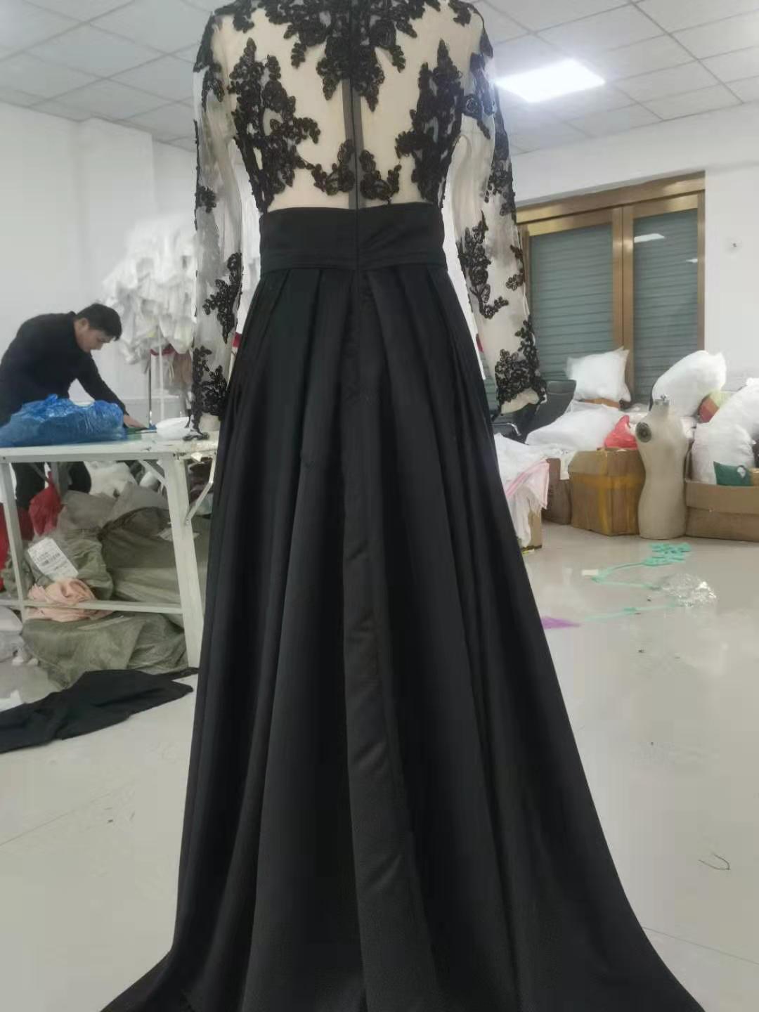 Long Sleeve Prom Dresses, Black Party Dresses, Black Formal Dresses, Engagement Party Dresses