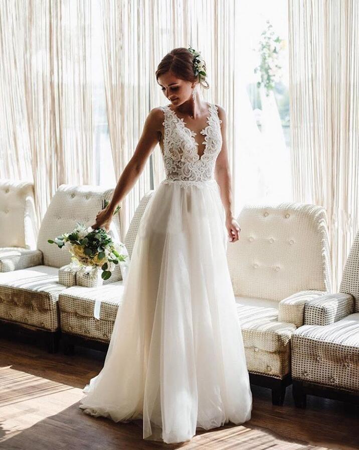 White Wedding Dresses, Lace Tulle Bridal Dresses, Beautiful Bridal Gowns