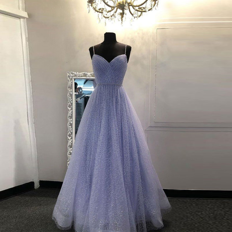 Lilac Evening Dresses A-Line Spaghetti Straps Beaded Waist abiti da cerimonia Floor Length robe de soiree femme pour mariage