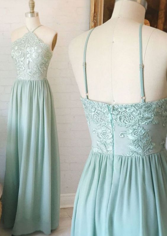Halter Lace Chiffon Bridesmaid Dresses with Appliques, Long Homecoming Dresses