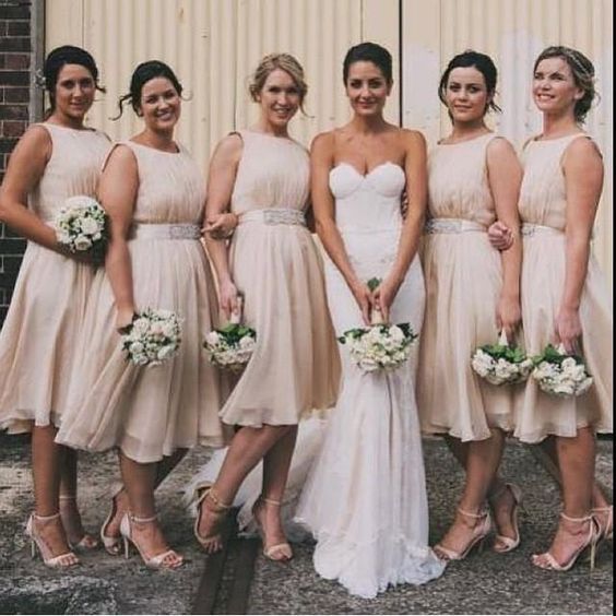 Champagne Chiffon Short Bridesmaid Dresses with Waist Deco