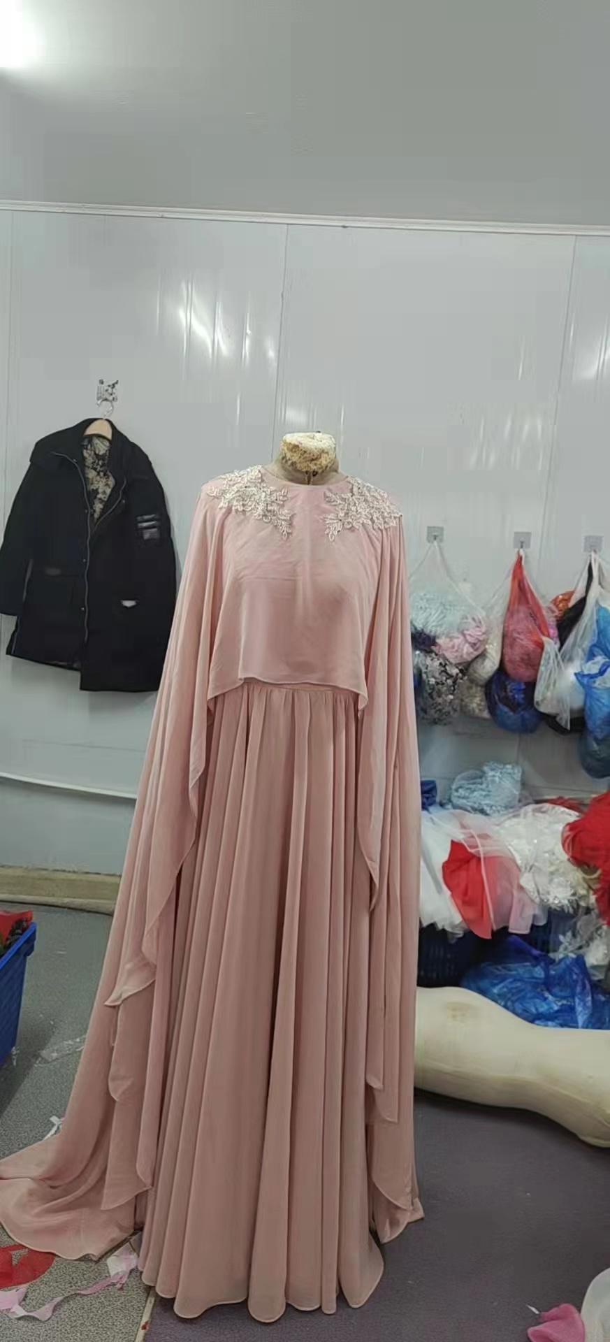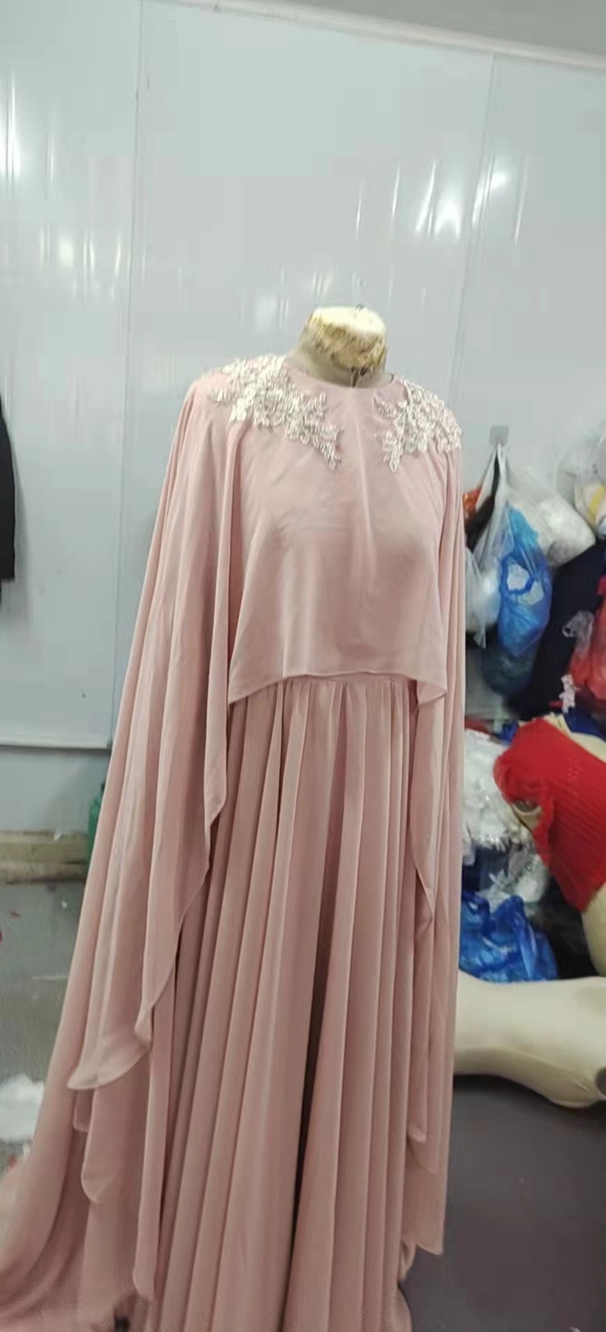 Real Image Pink Prom Dresses with Cape