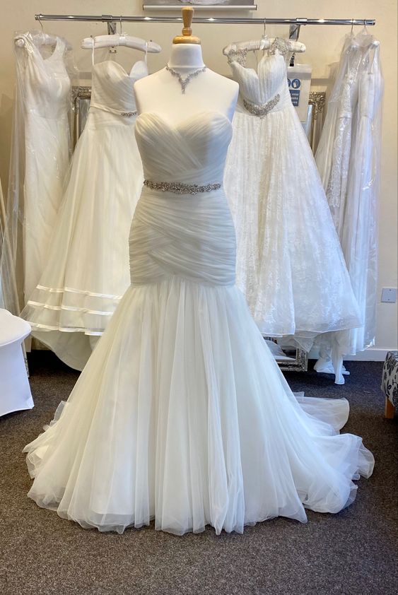 White Tulle Sweetheart Mermaid Bridal Gowns with Beaded Waist