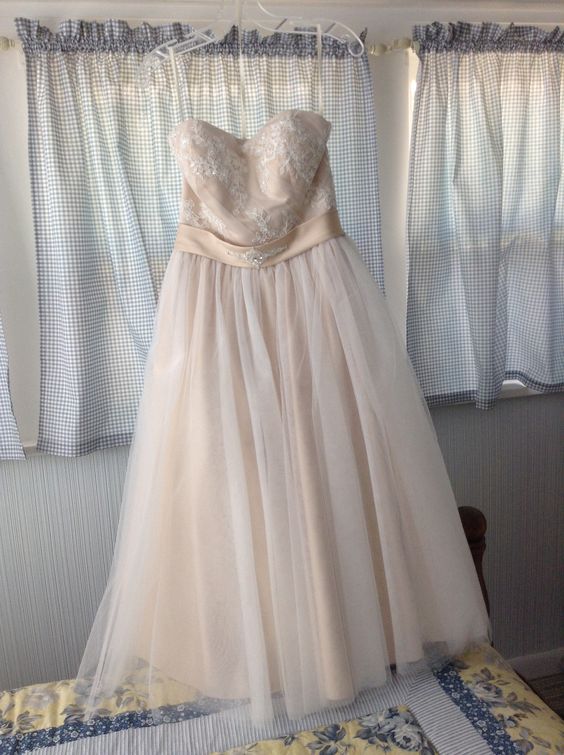 Sweetheart Champagne Lining White Tulle A-Line Wedding Dresses with Lace Appliques