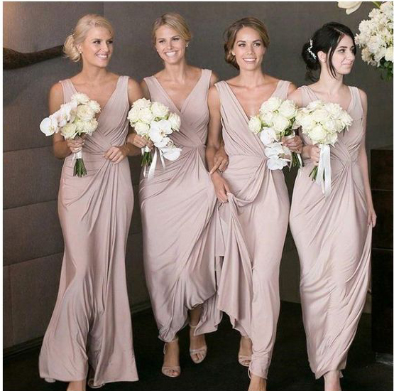 Dusty Pink V-neck A-Line Bridesmaid Dresses