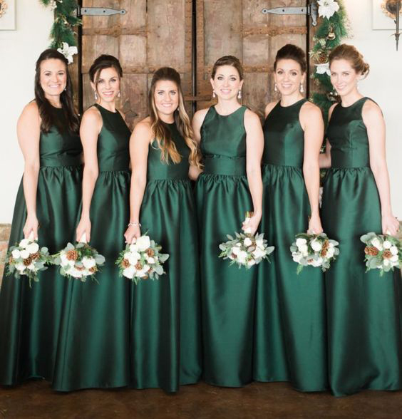 O-neck Emerald Green A-line Satin Bridesmaid Dresses
