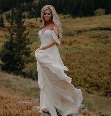 Off-the-shoulder Chiffon White Wedding Dress with Draped Skirt