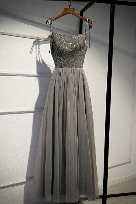 Sparkly Gray A-Line Formal Party Dresses with Heavy Beading