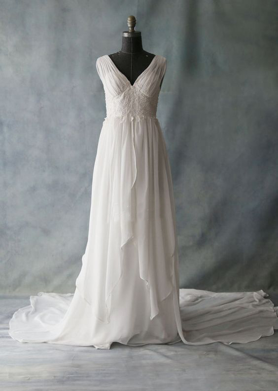 Ivory Chiffon Boho Bridal Gowns with Lace Appliques