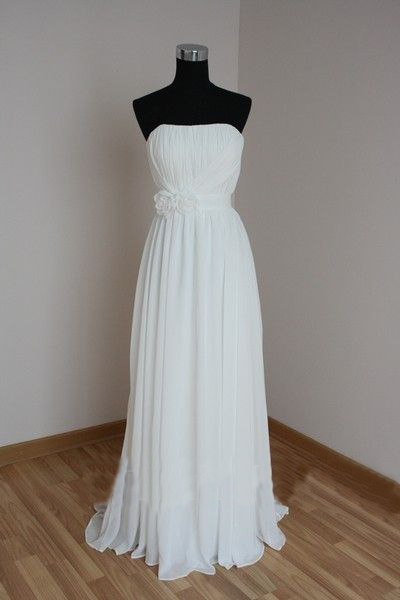 Strapless White Chiffon A-Line Bridal Gowns with 3D Flowers