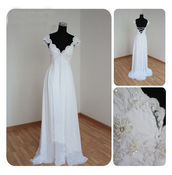 Elegant White Bridal Gowns with Beaded Lace Appliques