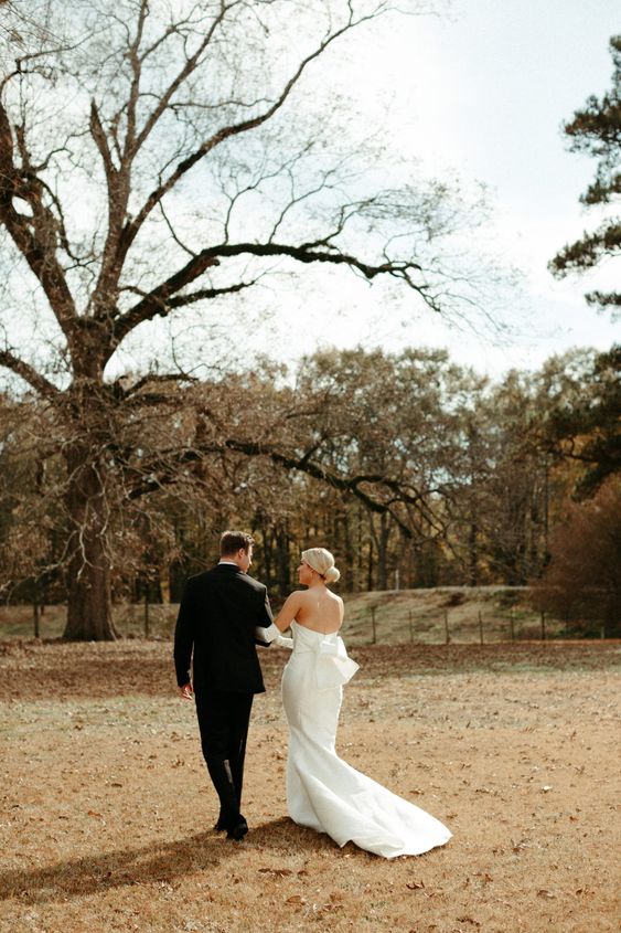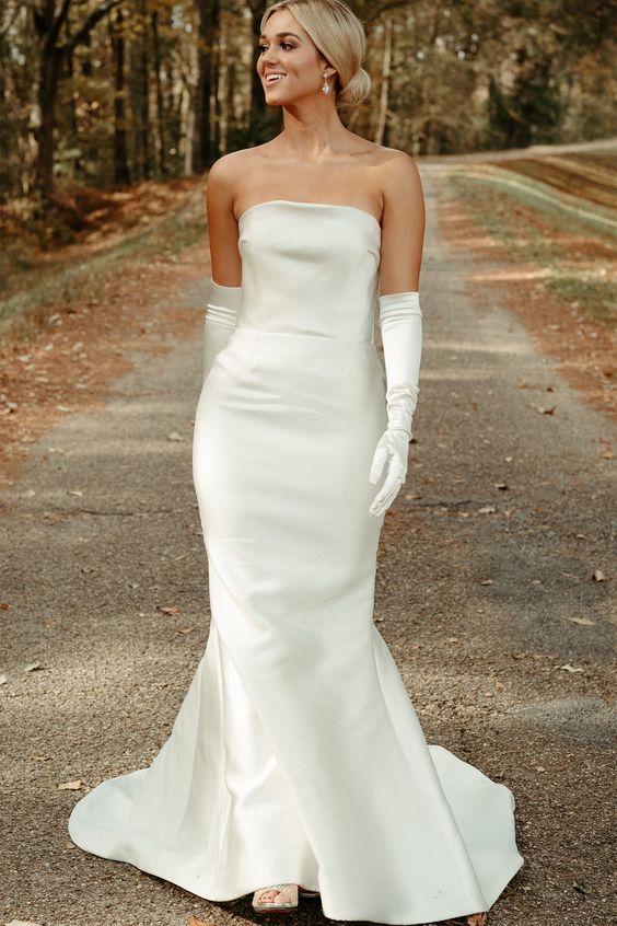 White Satin Simple Mermaid Bridal Dresses with Bow on Back