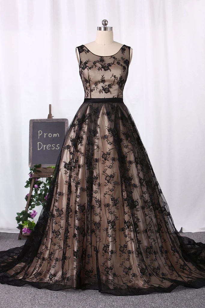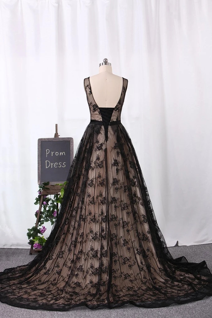 Black Lace Prom Dresses, Long Formal Dresses, Black Evening Dresses