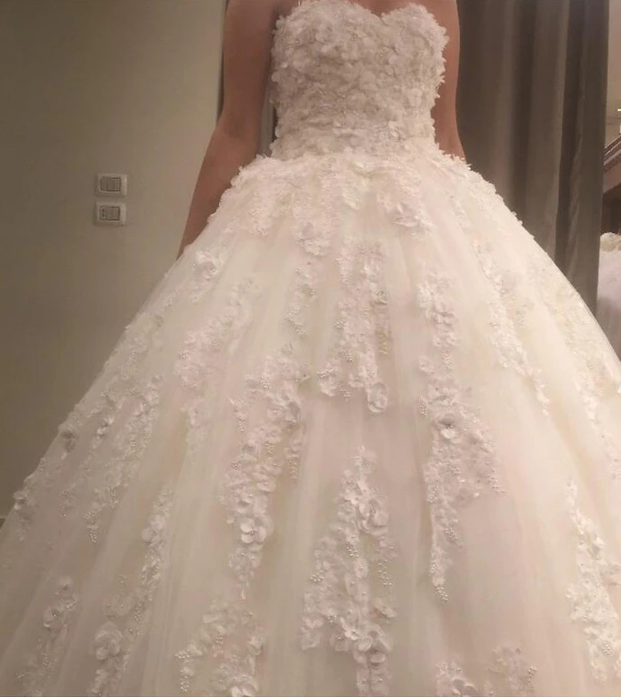 Sweetheart White Floral Ball Gown Wedding Dresses with Flowers