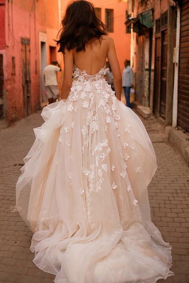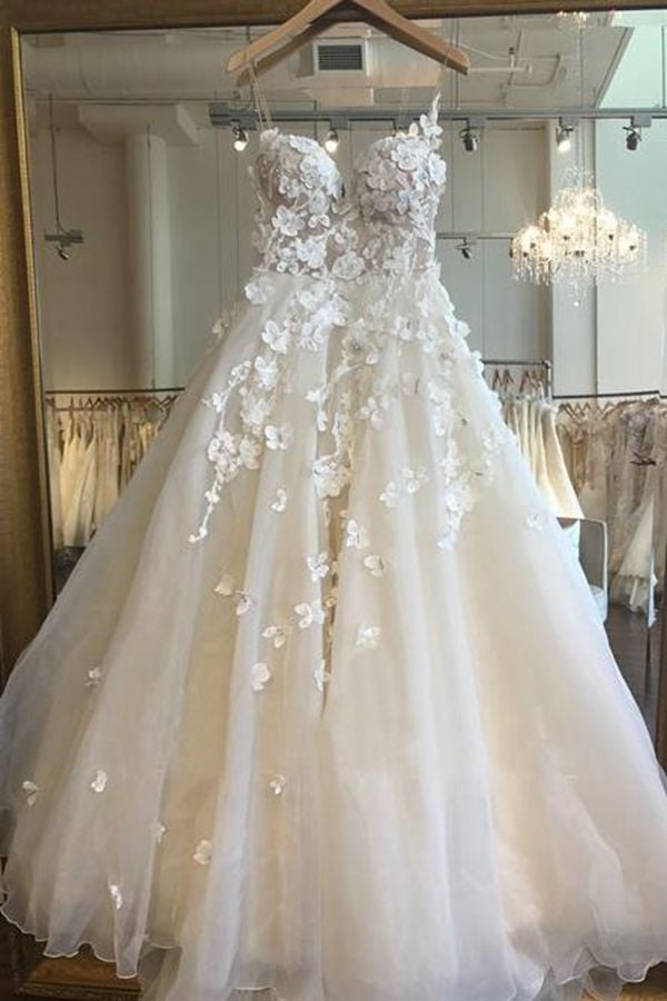 Sweetheart Silky Organza Floral Wedding Dresses with Appliques